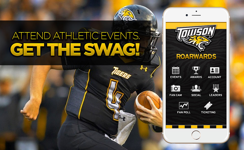 Towson University Athletics “Roarwards” is a free app that allows us to reward students just for attending Towson Athletics events. It uses the GPS on mobile devices to check students in at various venues throughout campus and the Towson area. The rewards program works on a point scale, so for every check in, students receive points and unlock awesome awards they can redeem.